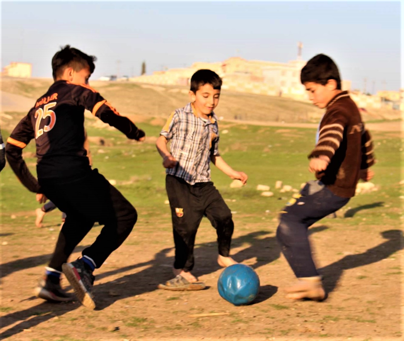 Not only is football great exercise, but a perfect way to make friends and, for a few minutes, forget the many horrors these children have experienced.