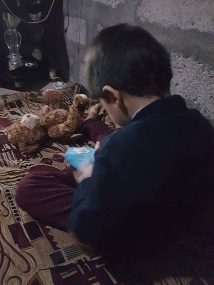 A five year old survivor of ISIS, who was taken from his parents at two years old. Thanks to the donations of YES supporters, the team were able to provide clothes and food for him and his sister. Both are incredibly traumatised by their capture.